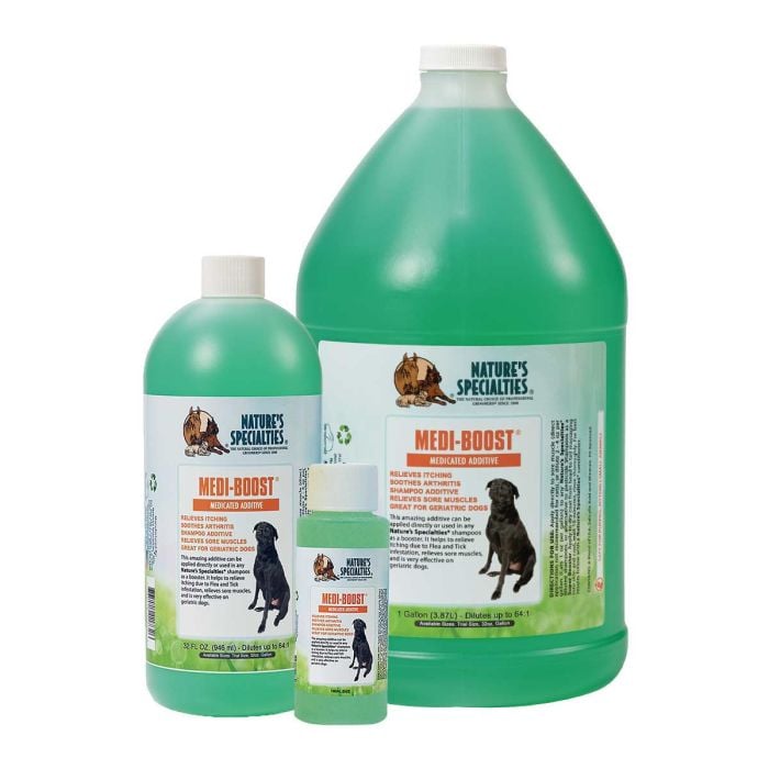 This amazing mixture can be applied directly to help relieve sore muscles or dilute 2-4ozs of Medi-Boost to 1 gallon of diluted Nature's Specialties Shampoo for a mild medicated shampoo with salicylic acid. May also be added into one of Nature's Specialties natural flea and tick alternative shampoos, for that little extra medicated boost. Safe to use on dogs, cats, kittens, puppies, pets.