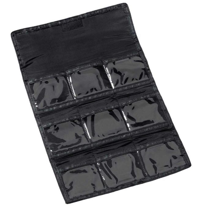 Flexible and easy-to-use blade bag conveniently stores blades. Holds up to 9 detachable blades in easy to access, see-through pockets with velcro closures. Blades not included.