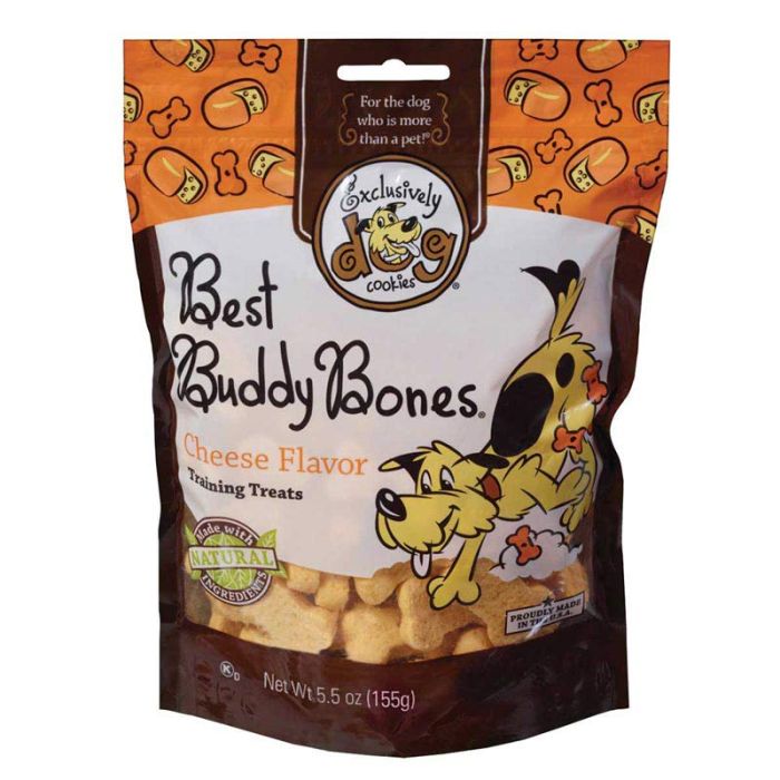 Your dog will love fetching Best Buddy Bones! A miniature bone-shaped cookie with texture that is not too hard or too soft. Better than cheddar ! Miniature bone-shape with the great taste of cheese. Made with natural, kosher ingredients. No animal parts and by-products. Great for training medium to large size dogs and a perfect size to serve as a treat. Ingredients:Wheat Flour, Vegetable Fat ( preserved with mixed tocopherols), Sugar, Dried Cheese, Salt, Garlic Powder, Turmeric. Guaranteed AnalysisCrude Protein (min) 6%, Crude Fat (min) 13%, Crude Fiber (max) 1%, Moisture (max) 8% Nutrition & Feeding Calorie Information (Per Treat) 13 General Feeding Guidelines (Dog Size): Toy 1-3 treats per day, Small/Medium: 3-6 treats per day, Large: 5-10 treats per day.