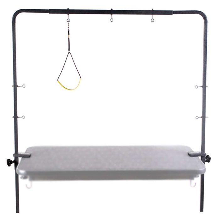 The No-Sit Grooming Post is designed to prevent pets from sitting during grooming procedures. The optional belt strap can be used to keep dogs from moving off the grooming post. The custom-designed bolt clamp attaches securely to any grooming table up to 1.5" thick, allowing it to fit most tables. The arm is made of durable 1" square, tubular steel and is painted with a rust-resistant Hammer Paint finish.