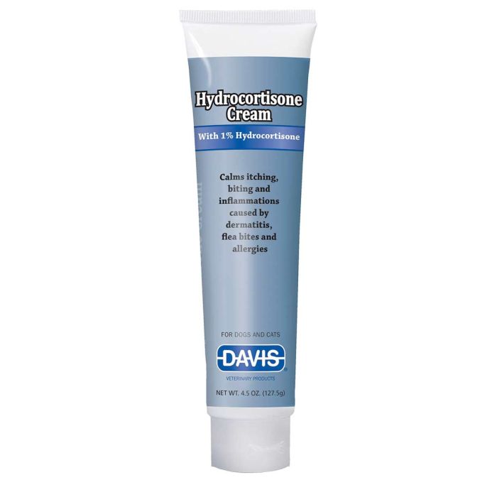 Davis Hydrocortisone Cream calms inflamed, itchy and irritated skin due to flea bites, dermatitis, eczema and allergies. This soothing cream contains 1% hydrocortisone acetate and helps break the cycle of scratching and biting. Davis Hydrocortisone Cream is non-stinging and free of fragrances or dyes that could cause further irritation. Safe for use on dogs and cats.