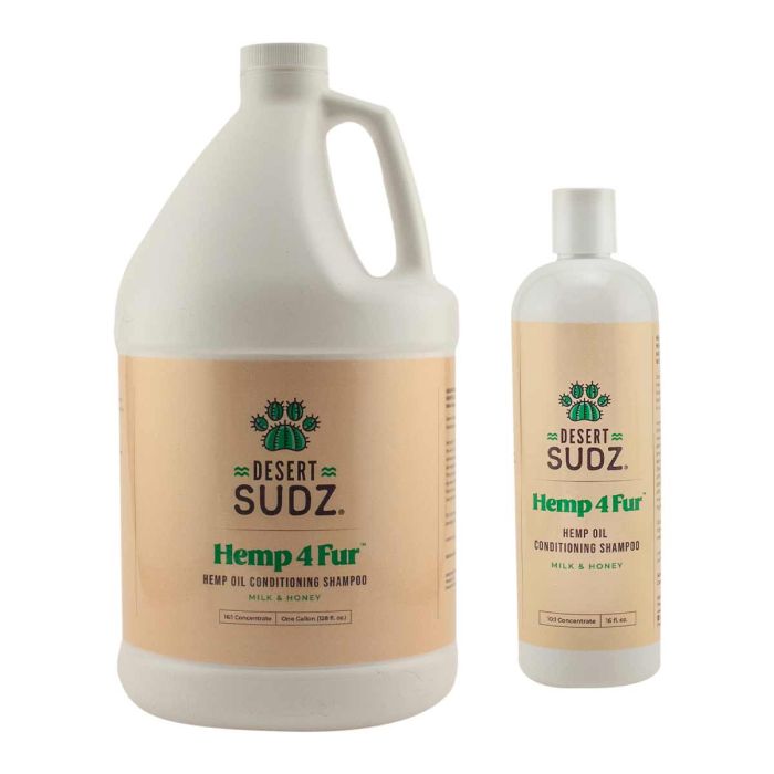 Desert Sudz Hemp4Fur Shampoo uses hemp oil to refresh, revive, and strengthen the skin. Hemp Oil helps fur maintain its suppleness & softness and relieves dryness. It is also known to naturally calm inflammation of the skin especially when combined with Chamomile and Calendula. This combination of natural ingredients condition the strands, rejuvenate the appearance and texture of the fur. The addition of Aloe helps to moisturize dry and irritated skin, leaving skin hydrated and coat soft and shiny. Leaves coat with the sweet and sunny aroma of Milk and Honey.