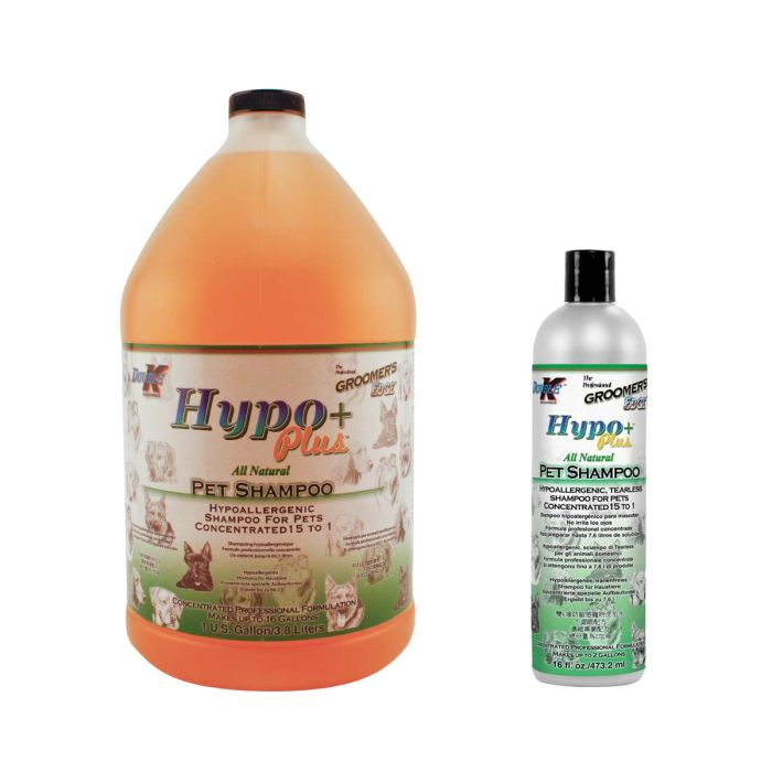 Groomer's Edge Hypo+Plus All Natural Pet Shampoo provides a gentle, rich grooming experience for pets and animal companions with sensitive skin. Hypo+Plus deep cleans all coat types, is fragrance-free, and especially pH balanced for animals. The special formula leaves the coat feeling clean and staying fresh for longer. Its natural formula is great for dogs, cats, as well as any companion and farm animals.