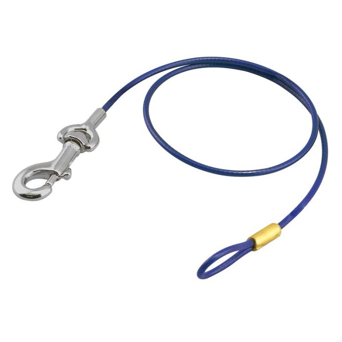 This durable 30-inch cable tether with heavy duty snap makes dog care easier. Perfect for tethering large dogs to the base of a grooming table, in the bathing area, to a wall anchor or anywhere a quick, reliable tether is needed.