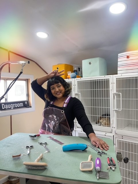 My name's Lily and I run my own home-based grooming studio, Daugroom. I?m all about simplicity, so the name Daugroom just felt right. It?s a room where your dog (daug) gets groomed! Many were against the name, but I stayed true to myself and stuck with it. I wanted a name that stood out while also being easy to remember.
