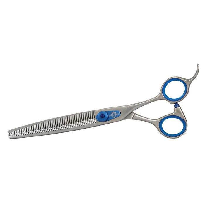 PremiumSatin Shears offer precision, comfort, and style. They are the ulimate in professional performance with a luxurious satin feel. Sleek and balanced with an ultra sharp convex edge and ultra smooth operation. Once you pick them up you won't want to put them down. Spoil yourself with PremiumSatin. All PremiumSatin Shears Feature: Japanese Cobalt 440C Stainless Steel with a Soft Satin Finish. 58-62 Rockwell Hardness. Ultra Smooth Operation. Blue Dial Adjuster. Convex Hollow-Ground Premium Sharp Edge. Comfortable, Ergonomic Handle with Blue Finger Rings and Matching Replaceable Silencer. All Shears Come in a Sleek, Hard Side Carrying Case Which Contains , Extra Silencer and Polishing Cloth.