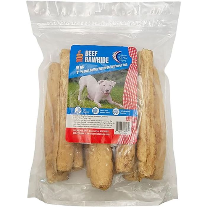 Rawhide Beef 8 inch Peanut Butter Flavored Retriever Roll - 10 pack