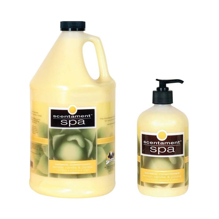 Ease your pet's mind and body with the calming effects of Scentament Spa Oatmeal Conditioner. Featuring organic Jojoba oil, silk and oatmeal protein and vitamins, with an aromatic lemon vanilla essence. Modeled after B&BW's Lemon Vanilla.